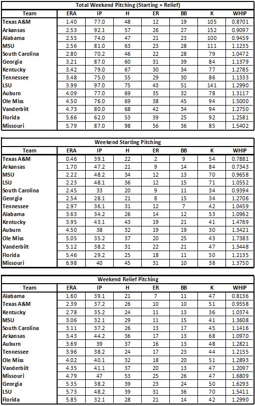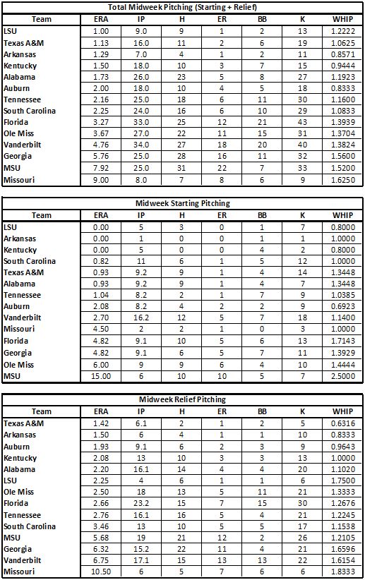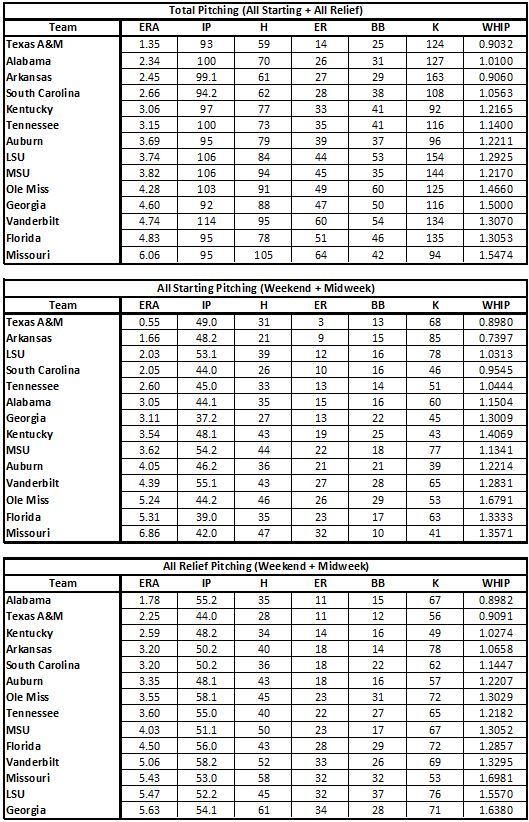 Pretty much confirms what I already knew about UKs staff. Excellent relief pitching and good midweek. Starters need to settle in and show some improvement.