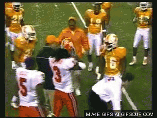K.C Crosby doing that little jig in the endzone vs. Tennessee last year was pretty funny. Or was it Googer? I can't remember right now.
