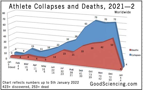 Here's a list of 178 athletes who have died suddenly. Link also lists the uptick in cardiac arrests that have not yet resulted in death.