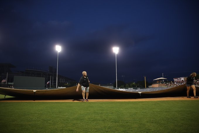 Are we gonna restart the game in College Station tonight? A baby thundershower has caused this delay. Come on guys.