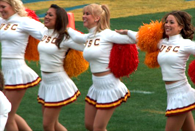 Why is USC the only school that lets their cheerleaders have tits? Do they have a regular college titless squad as well that does all the flips and shite?