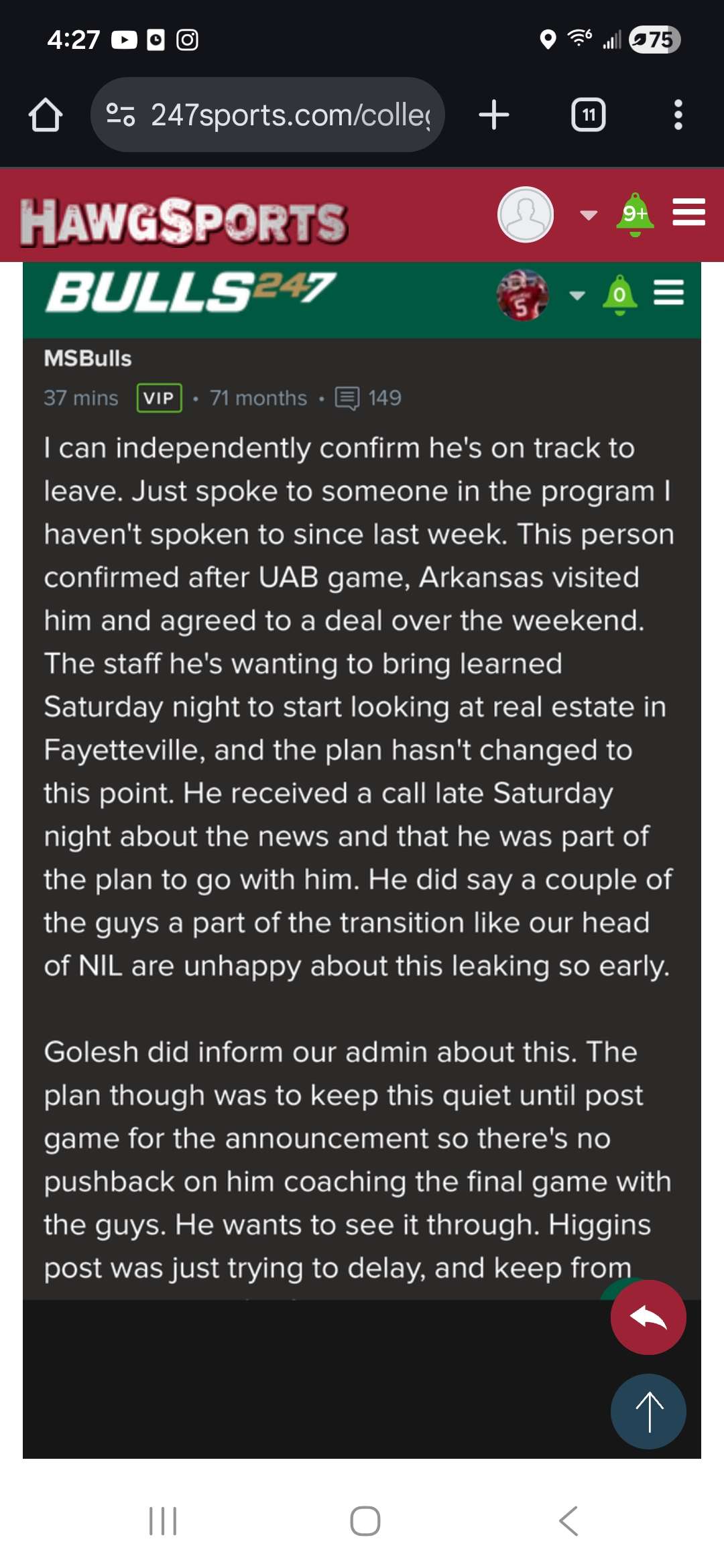 Thought sumrall was auburn bound. Golesh will have options this weekend. Kiffin decision is key. If i am Golesh, and wife isn’t pushing him to Arkansas, I hold off to see what Kiffin does. May end up with a Florida or lsu offer