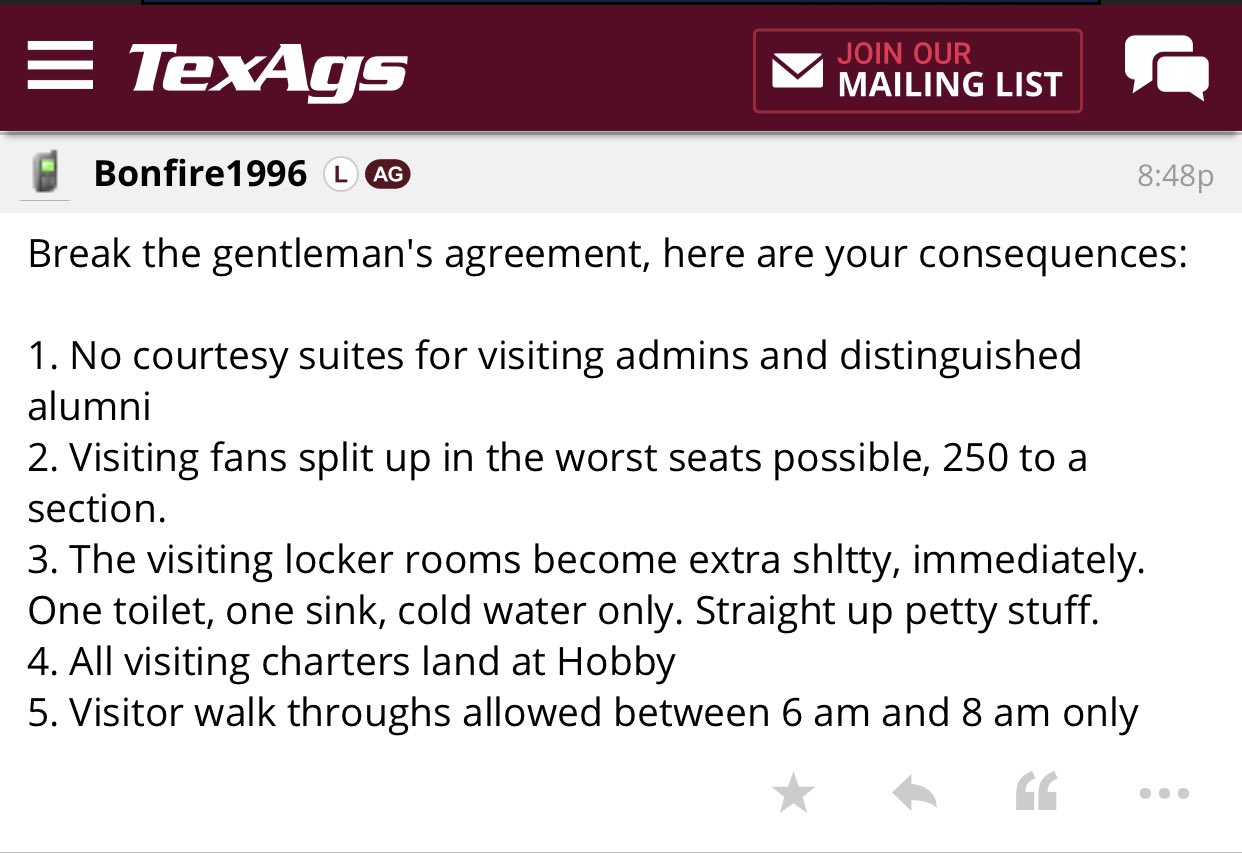 Dude, no. Just don't. If the East Division schools are for this, it's because the addition of t.u. and OU brings the conference up to the magic number of 16. Their in-state rivals will be forever shut out an they won't have to fret about their so-called "gentlemen's agreement" again. Throwing A&M under the bus solves their problem permanently.