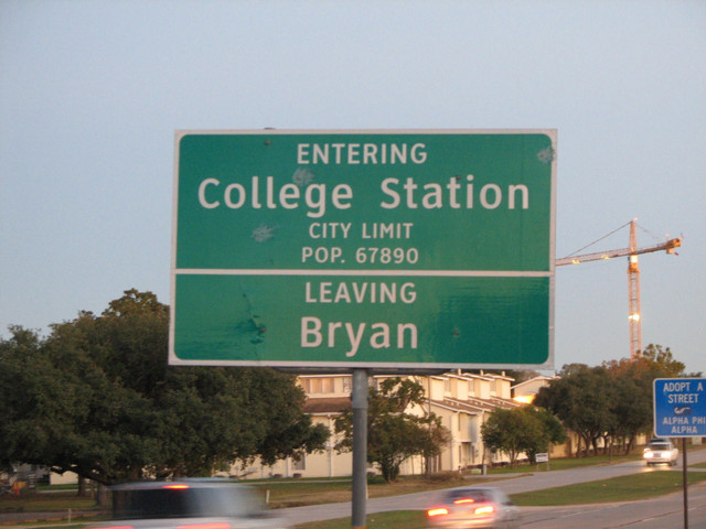 Bryan isn't just nearby. Bryan and College Station directly border one another. The only way you know you're moving between the two is the signposts along the roads that say "Entering Bryan, Leaving College Station" or vice versa. There is absolutely no separation between the two.