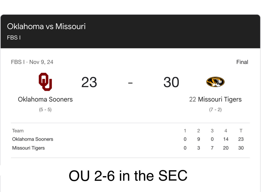 Everyone is expecting Mizzou to flounder, yet Oklahoma is living on an Arch Manning-like hype bubble. How many losses before their bandwagon of fawners starts emptying? This week if they lose to Aubie and Jackson Arnold?