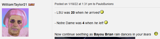 do you see me throwing shade at other schools who just fired their coach and/or who are bad this year? I'm very aware of LSU's current situation. You seem to be oblivious at USC's
