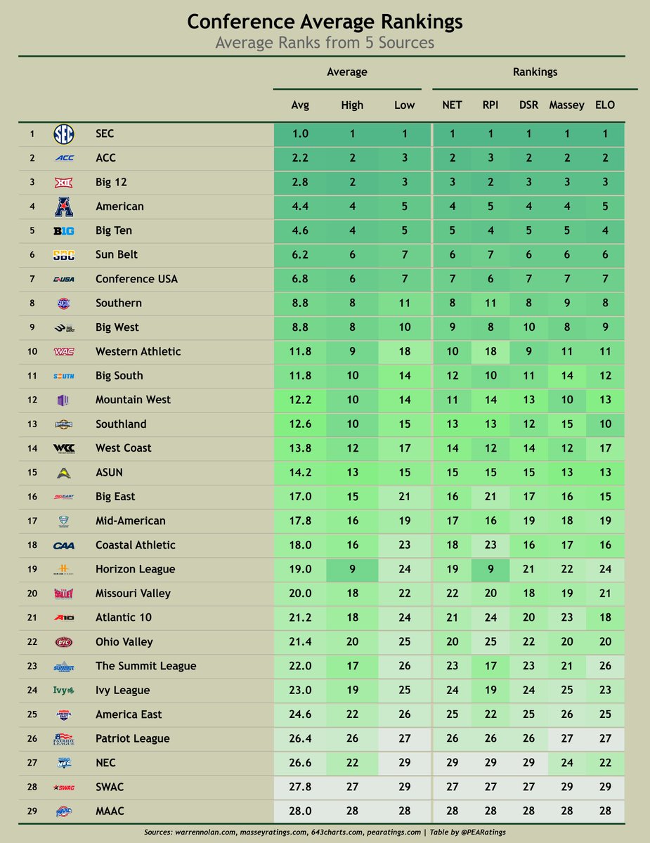 PEAR rankings by Conf