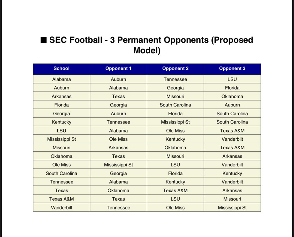 Every time this topic comes up there’s always a comment about one team getting screwed. People forget that for decades LSU’s permanent opponents were Alabama, Auburn, and Florida and you never heard us say anything.