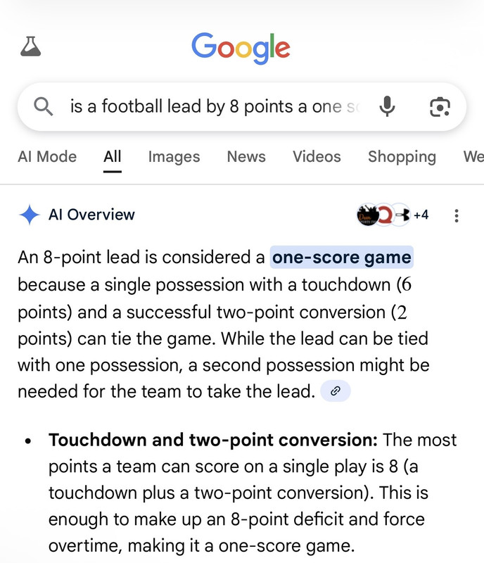quote:After you score a TD, don’t you have to also kick an extra point? So is a 7-point lead also a two-score lead?
