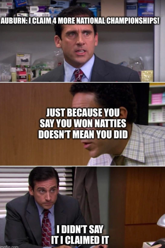 I'm just amused by the hypocrisy of trying to say Alabama shouldn't claim titles in which they lost bowl games (when the AP and Coaches polls awarded titles prior to bowl games) but Auburn claiming titles when they weren't even allowed to play in bowl games (1957 and 1993).