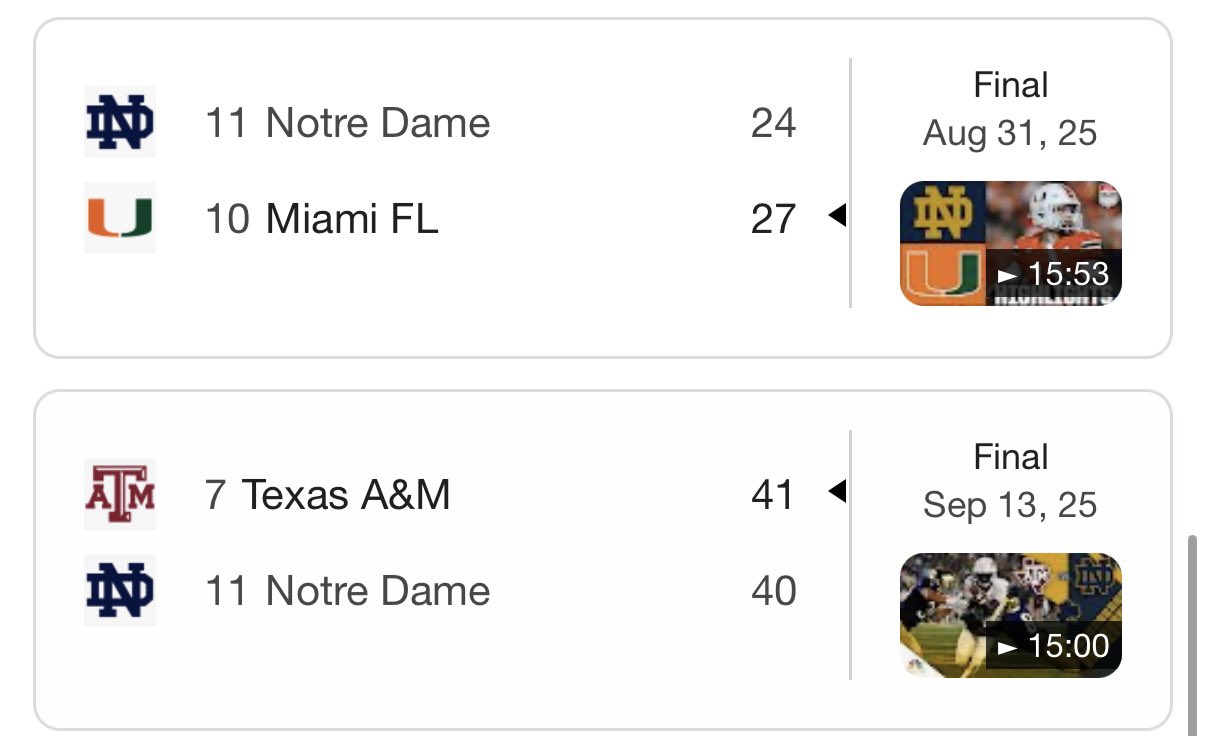 The Irish lost their 2 toughest games of the year AND they haven’t won a road game vs. an AP Top 10 team in the Playoff era.