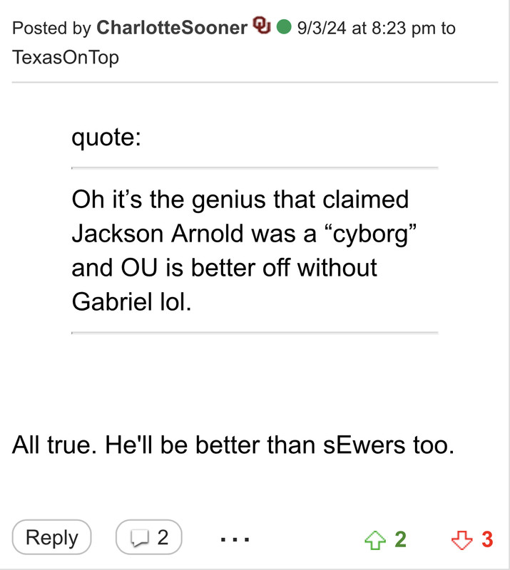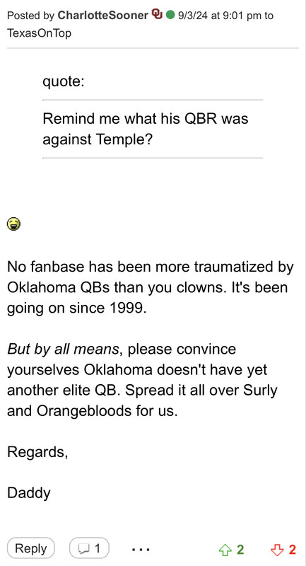 Posted on 10/20/24 at 1:00 pm to CharlotteSooner