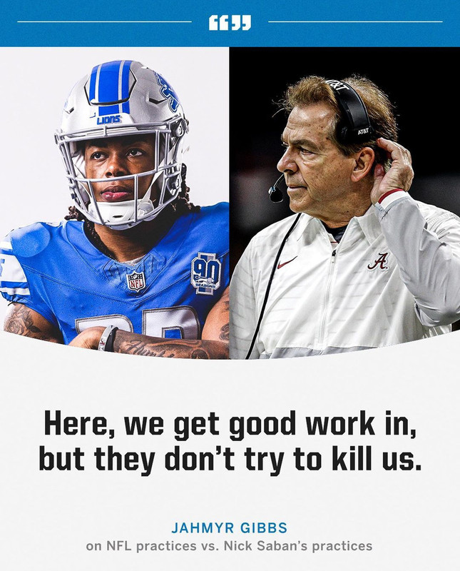 Jahmyr Gibbs on NFL practices vs practices at Alabama