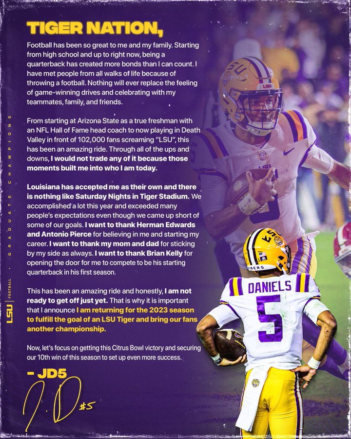 Jayden Daniels is coming back