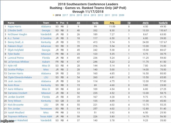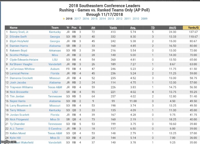 Of course the analysis is all RB's in the SEC against ranked teams. Cmon guys.