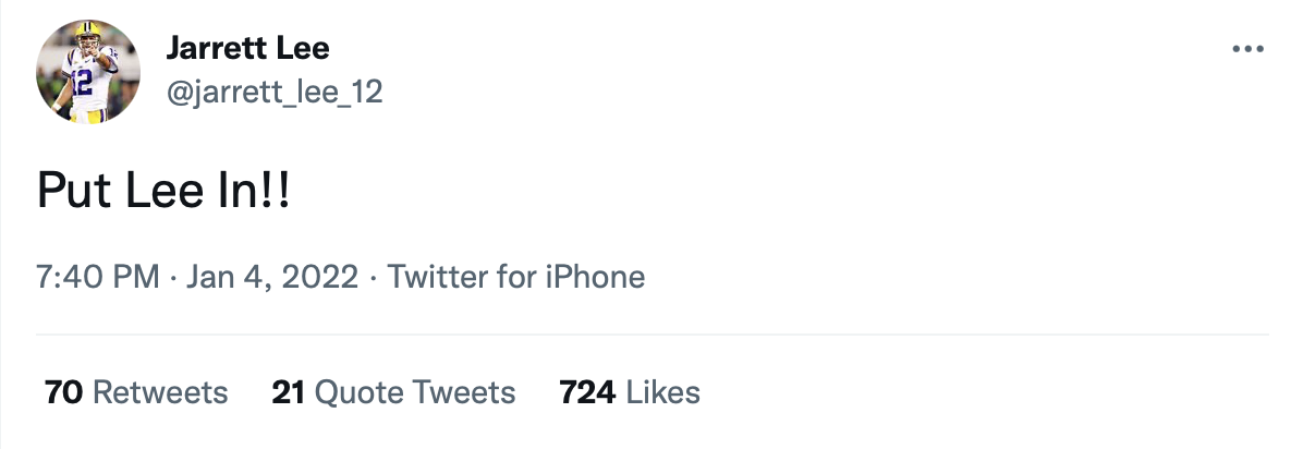 Posted on 1/4/22 at 9:21 pm to LSUBALLER