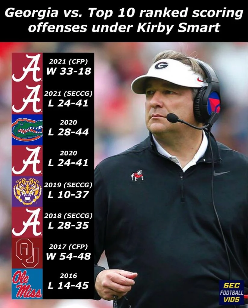 Kirby sucked at stopping good offenses while he was at Bama, too.