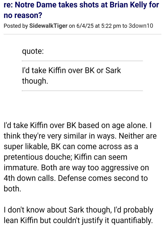 I think that Kiffin has very clearly raised the floor and cieling at Ole Miss—especially in the NIL era. Winning takes good coaches and talented players and while any sane person would expect some regression at OM, the program has the money and organization to compete at a high level.