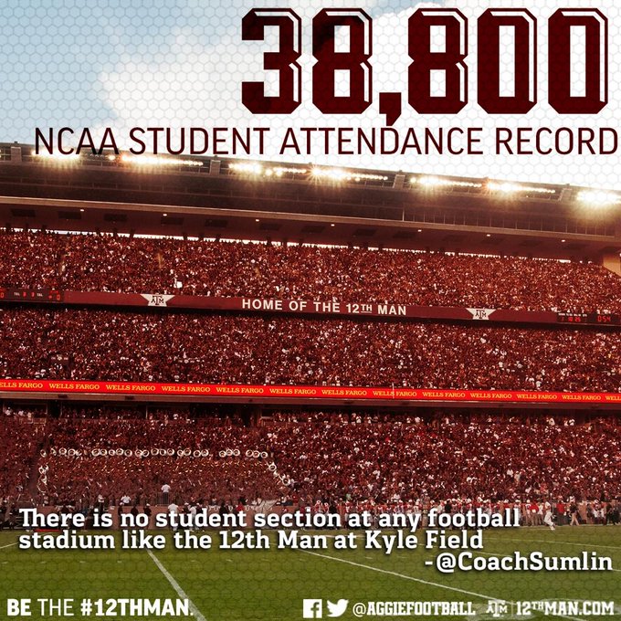 there's at least one thing that happens in the student sections of home games in the other 13 SEC schools that never happens at Aggy games