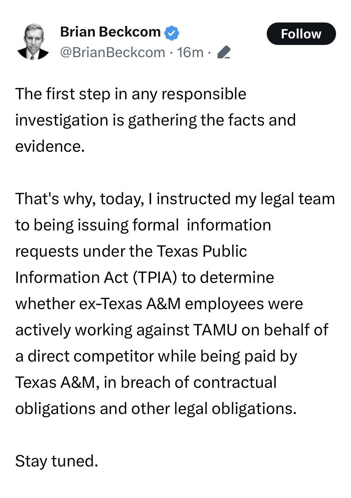 Apparently aggies are using people saying they've known about this / heard about this hire for months as ammunition for Texas tampering.