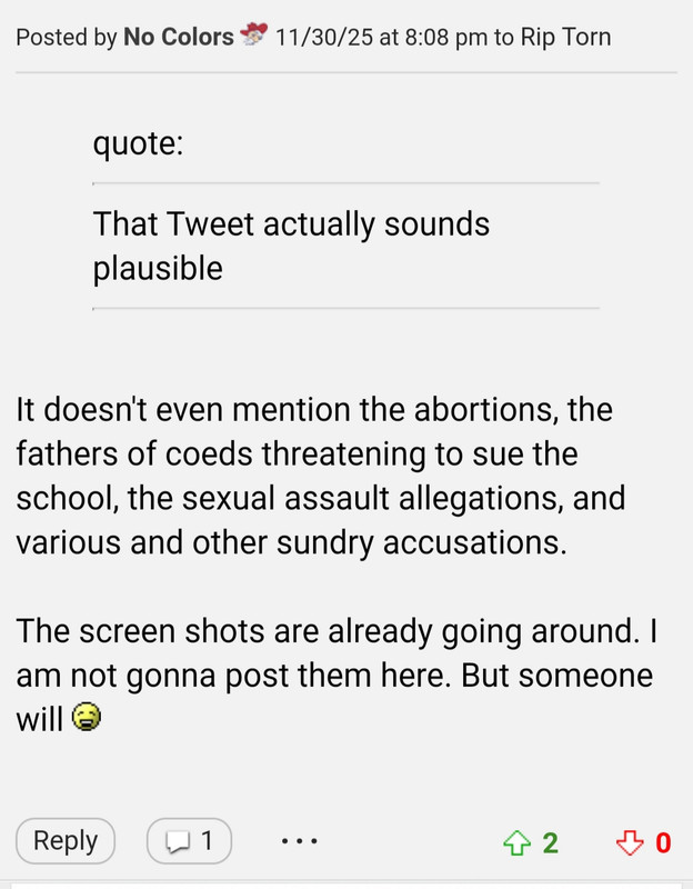 Don't blame him. Starting or repeating salacious rumors about our coach is a step too far though.