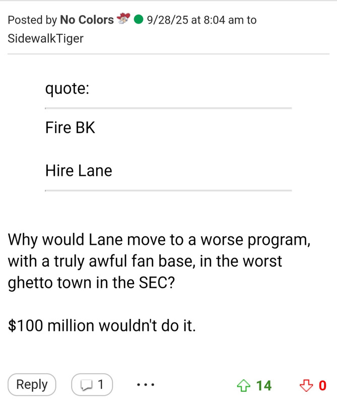 You can insult Ole Miss all you want, but besmirching the great mascot colonel reb is off the table. Shame on you