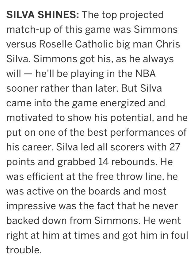 Here's LINK 's recap of the Ben Simmons-Chris Silva game from last year. Simmons' team won 71-64.