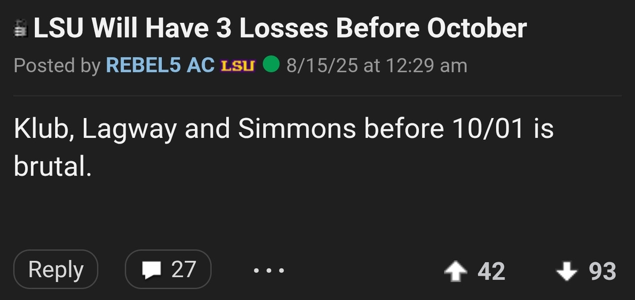 Why in the world was this thread buried? https://www.secrant.com/rant/sec-football/all-my-lsu-friends-have-been-texting-theyre-scared-of-saturday/120301521/