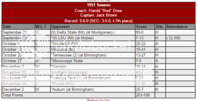 quote:The Alabama official site has the 1951 game in Mobile, Alabama. Rolltide.com