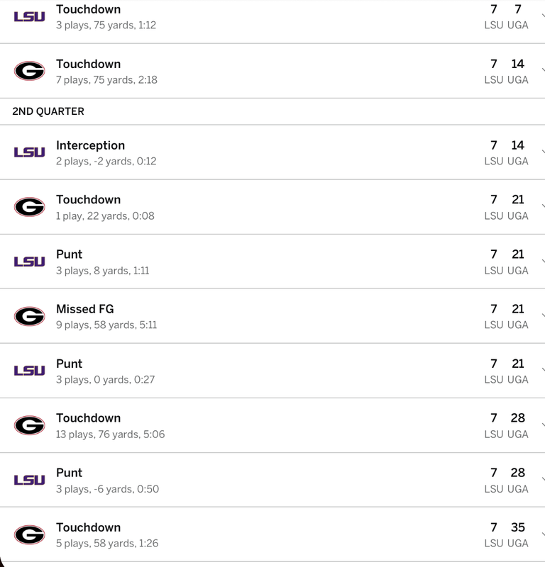 Also, since this time Georgia got some pretty good revenge. The score was 35-10 at halftime, Jalen Carter raised the Heisman and the few LSU fans who made the trip to the SECCG wondered why they spent all that money to go to the SECCG.
