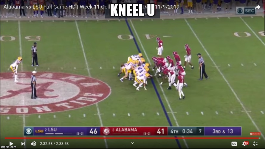 But Bama ran it down your throat on the first drive before you were gifted the ball on a freak turnover - which no LSU player had anything to with - right as Tua was about to walk into the end zone.