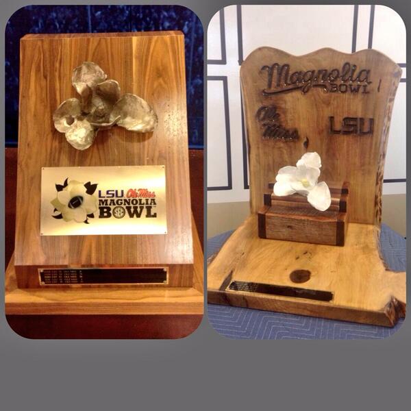 I've not a dog in the fight, but if this is what the ole miss and lsu baws call "making" and "fixing" trophies, then #softhandsbrother This looks like some middle school votech project wtf I mean come on folks