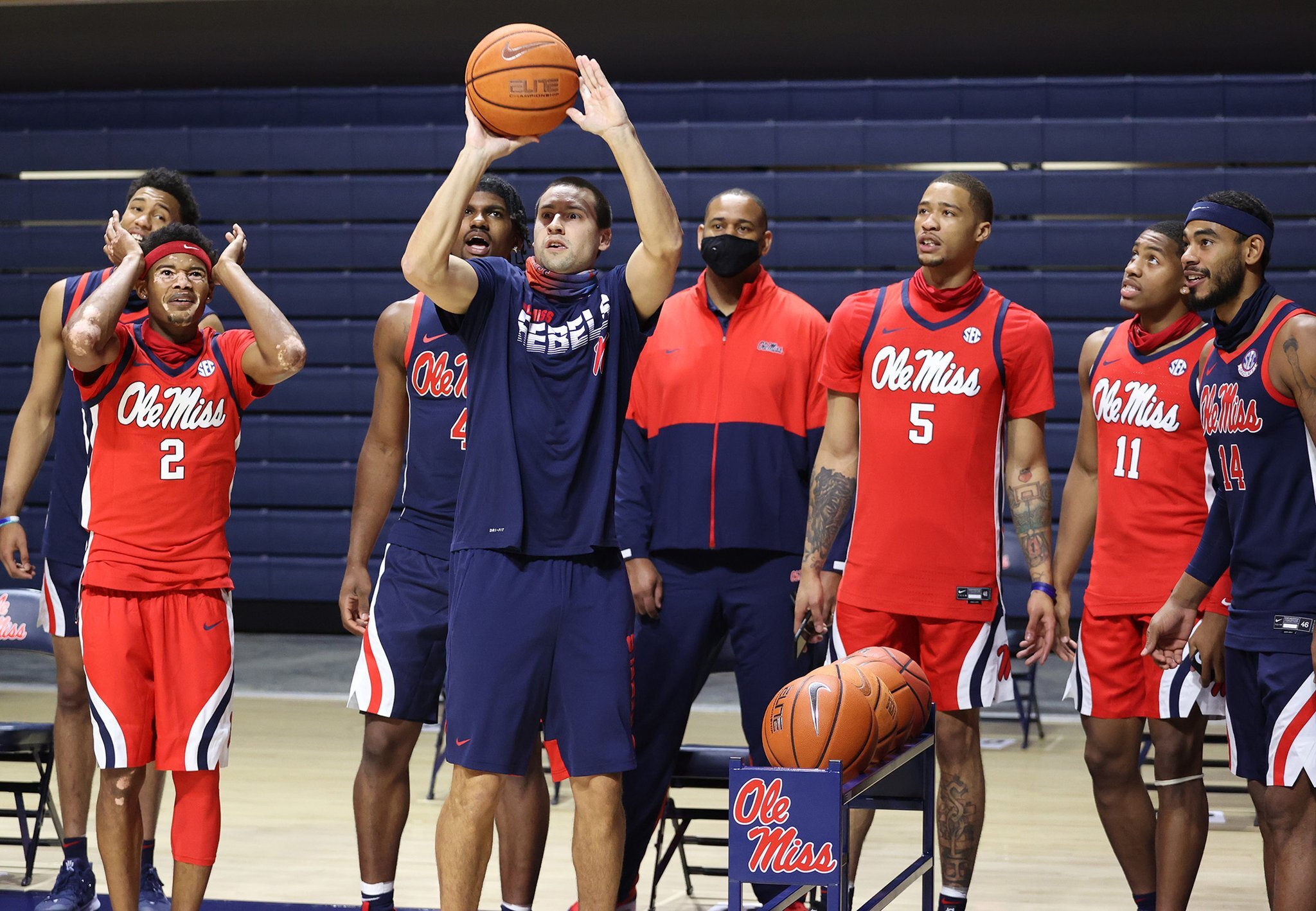 Who is the chubby bearded guy sitting at scorer's table that is laughing and clapping (bottom left)? Ole Miss guy since he is clapping?