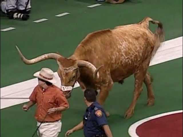 In 1999, Bevo popped on the turf in the Big12 Championship game