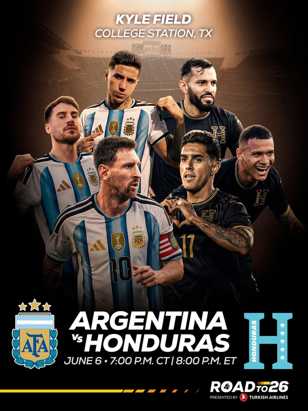 Argentina plays Honduras at Kyle Field on June 6. We had a Mexico vs. Brazil friendly two years ago and even though it didn't quite fill the place (85,000), the traffic from Houston was pretty bad, as we had a lot of people who weren't familiar with traffic and parking in CS make the trip, but that's one reason why you host these things (for the exposure).