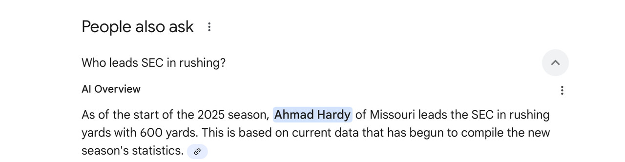 Ahmad Hardy. Look him up. Suggest searching for "nations leading rusher".