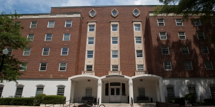 Robert Lee Moore Hall, named after a famed mathematician and notorious racist, and home to physics, math, and astronomy. At least there's a telescope up top on the roof.