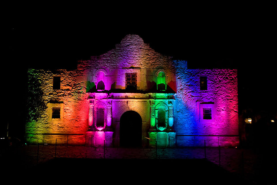 I could be incorrect … but those lights on the Alamo Mission were likely illuminated for Fiesta.