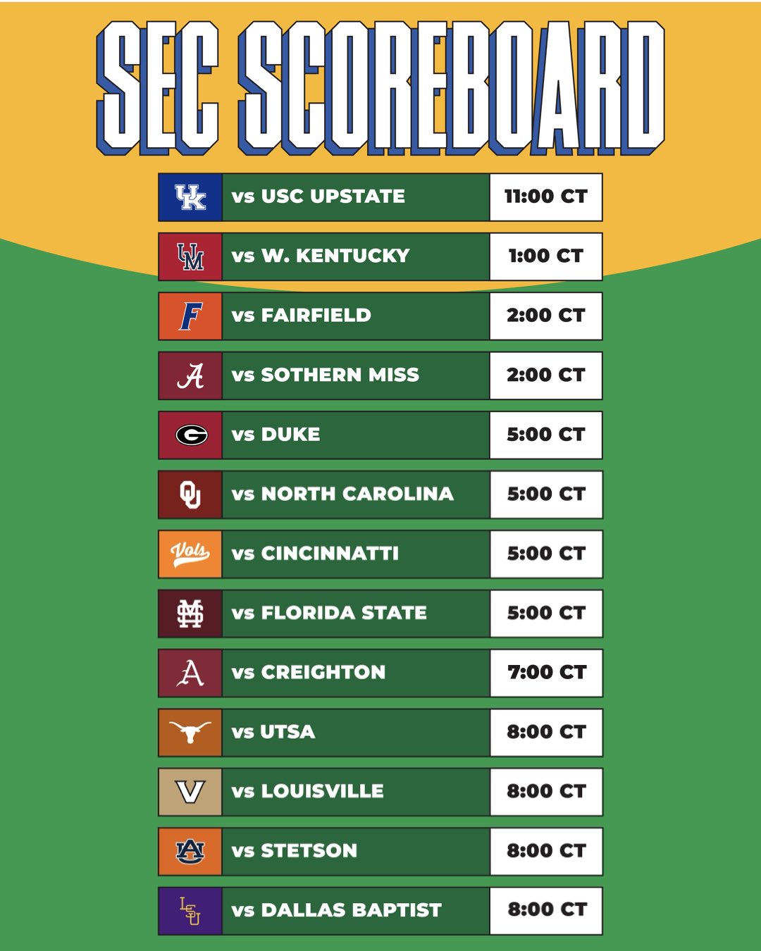 SEC goes 9-4 on day 1.