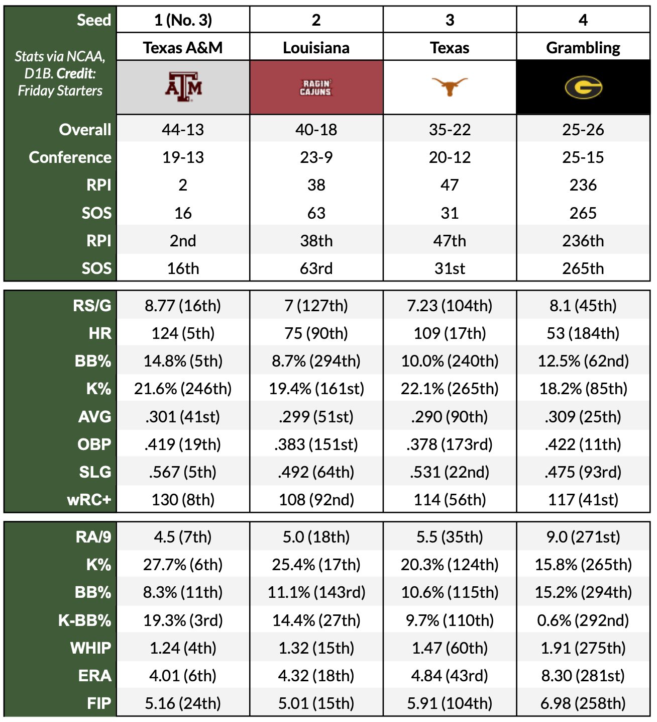 Looks about right in the College Station regional..