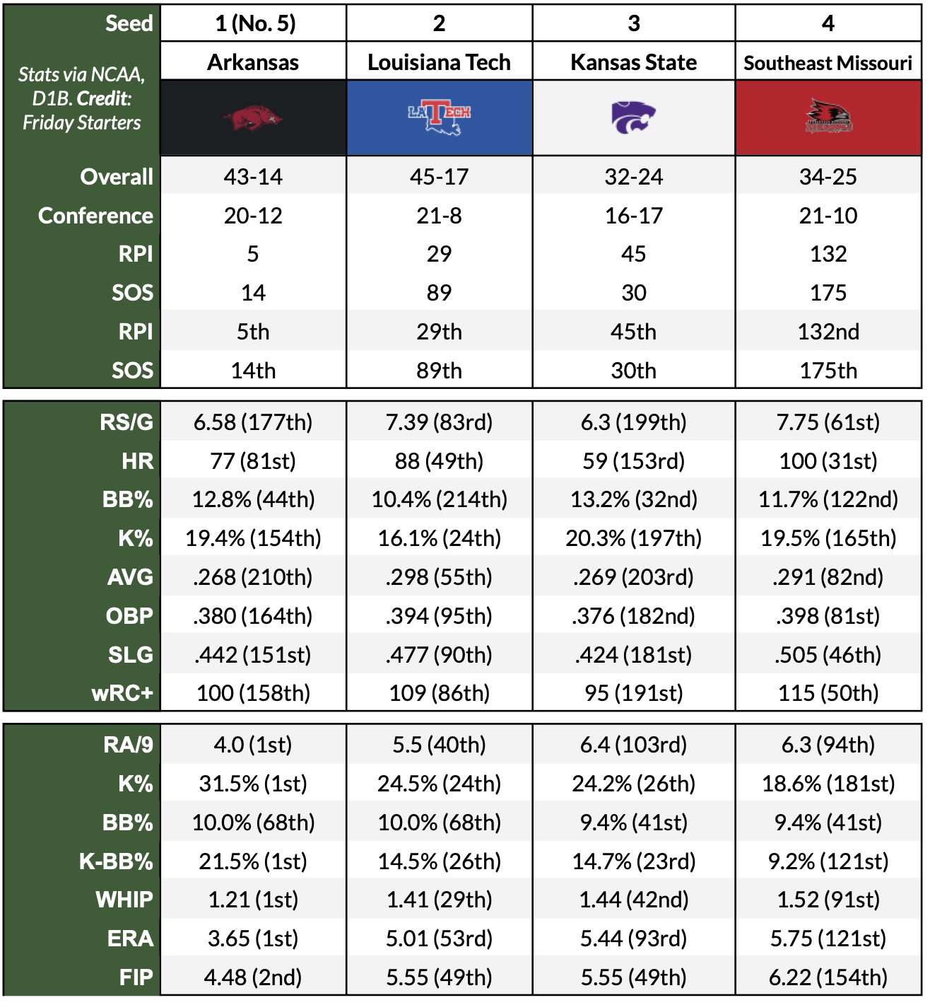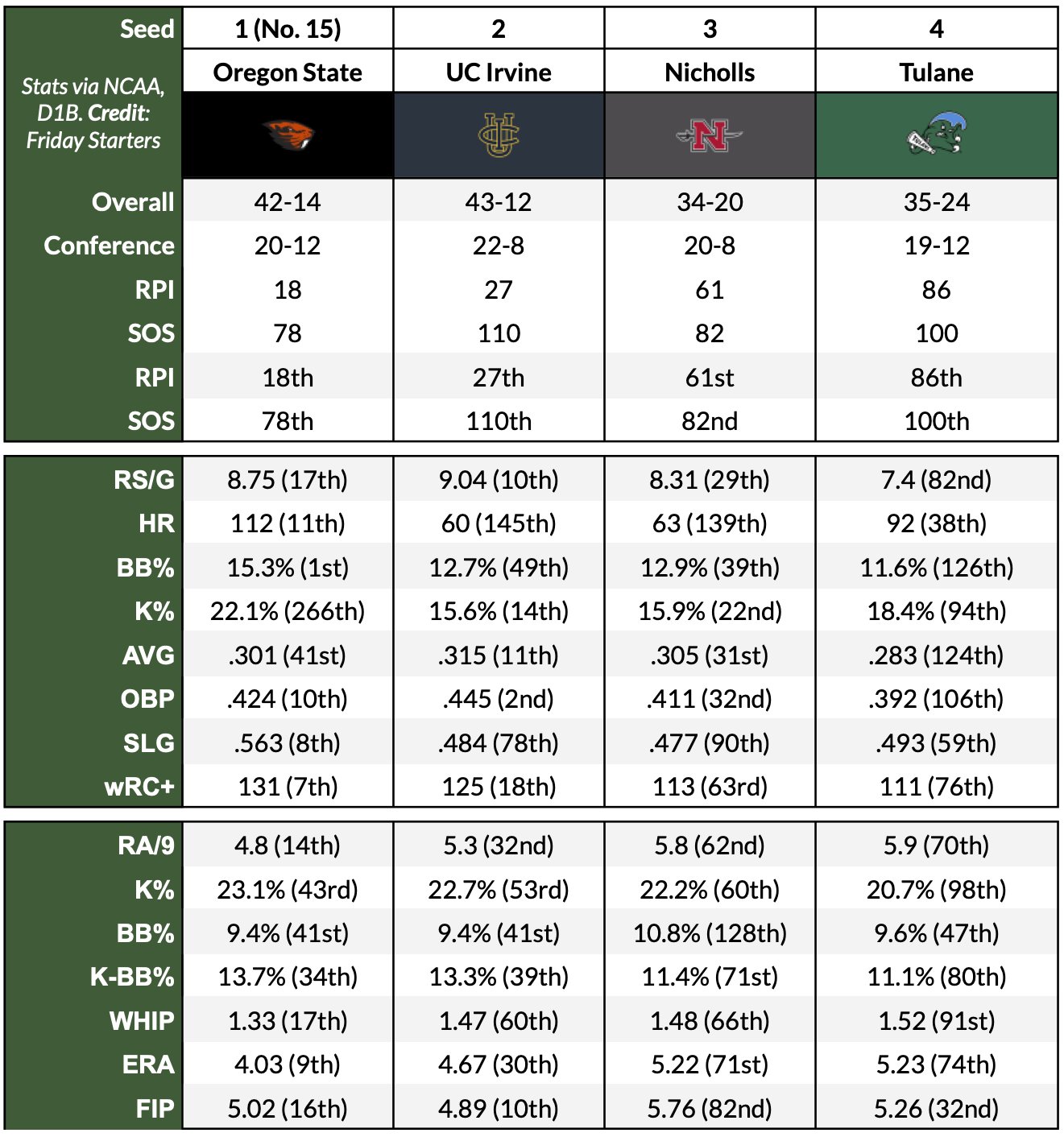 re: NCAA Baseball Tournament Selection Show Thread 11AM CST ESPN2