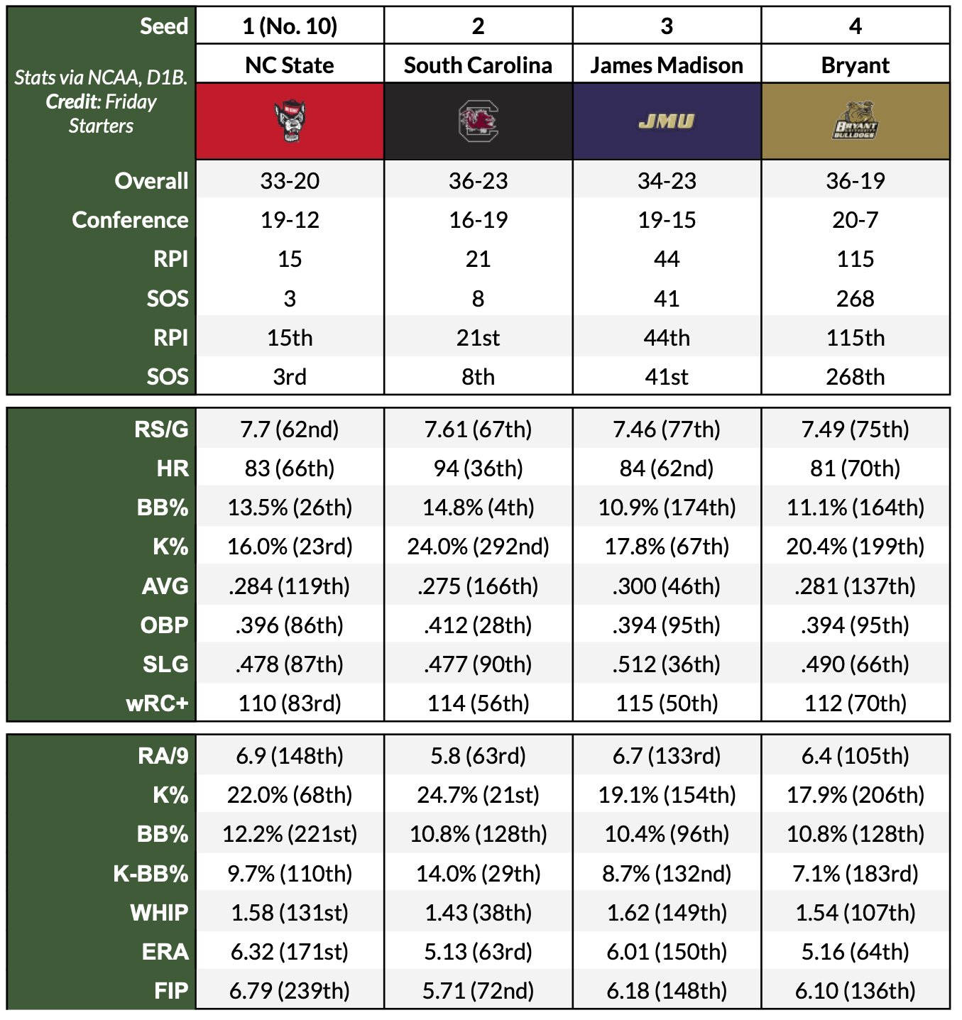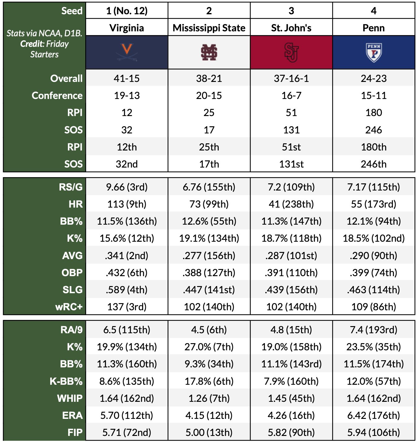 Lots of respect between MS State and UVA. Two programs that have both won the CWS and been runners up as well. And then there's the potential for a rematch of MS State's exciting 6-5 come from behind win over the Cavs in 2021. Disappointed we didn't get to host but this should be a good regional for all teams involved.