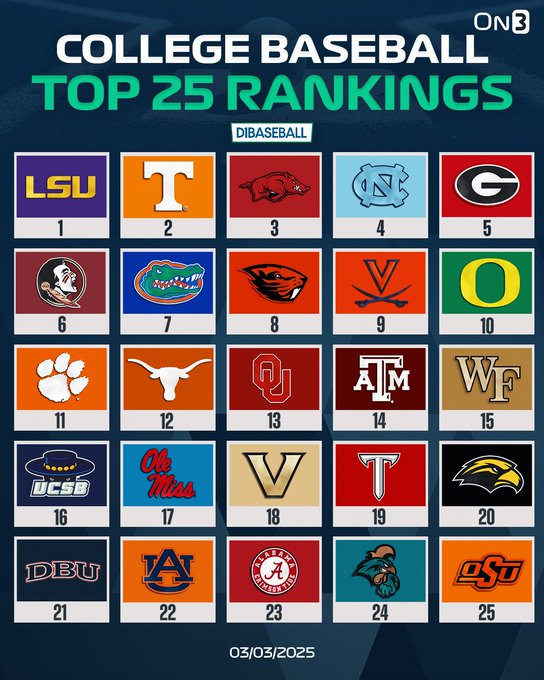 Except you're wrong... LSU is # in D1 Baseball's poll. Tennessee is #1 in both Baseball America's and Perfect Game's polls.