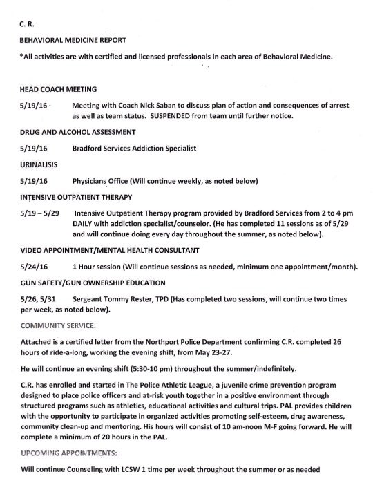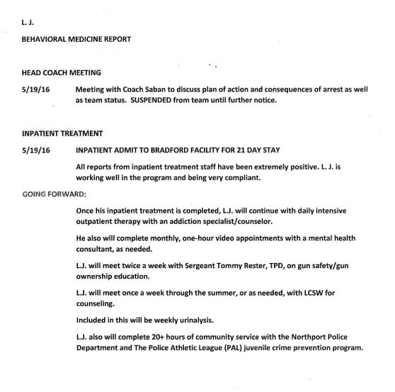 Each player was enrolled in a Bradford service addiction program which involves weekly urinalysis. These were determined by a meeting with Coach Saban.