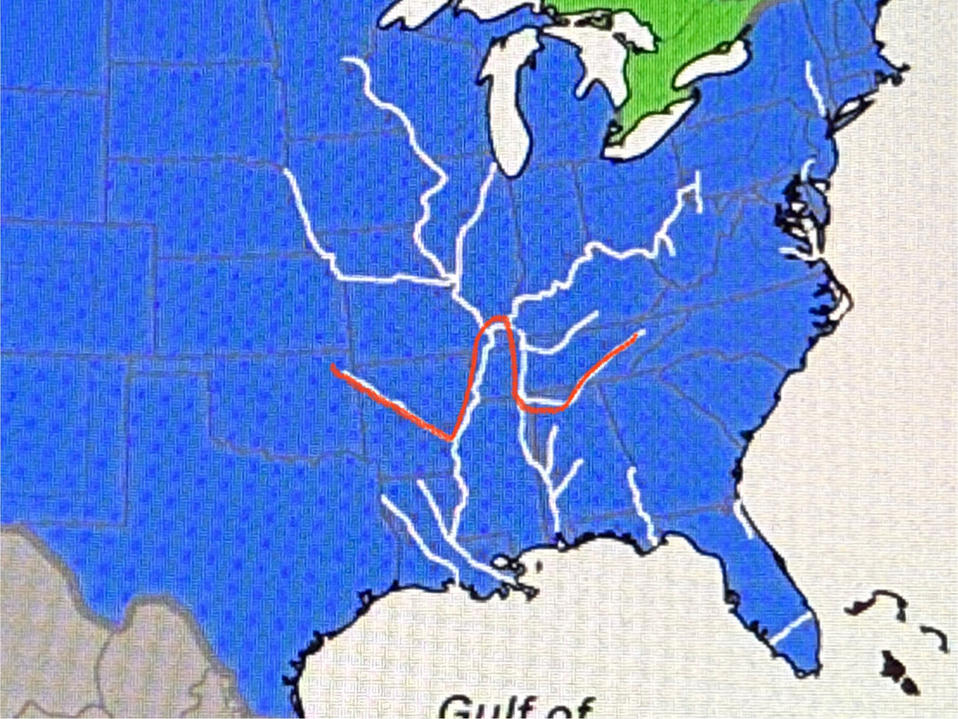 Until I saw a map, I was imagining the “big U turn” he spoke of as not so big. I had that route shorter in my mind until I saw how far south the Arkansas River hits the Mississippi.