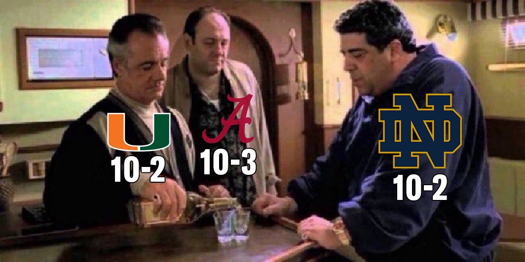 Notre Dame was ranked ahead of Miami EVERY SINGLE WEEK and somehow ended up outside the CFP