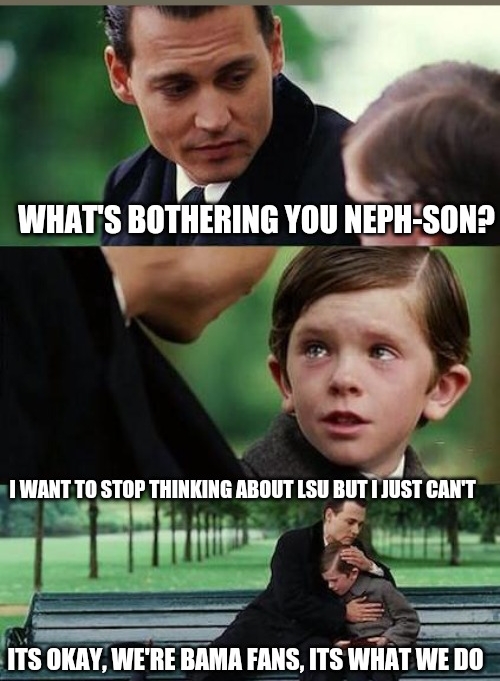 Ya see, Bama owns you. Auburn and Ole miss have fared better as of late. If we were gonna be obsessed with anyone, it would be of a team that is an actual threat more than once a generation.