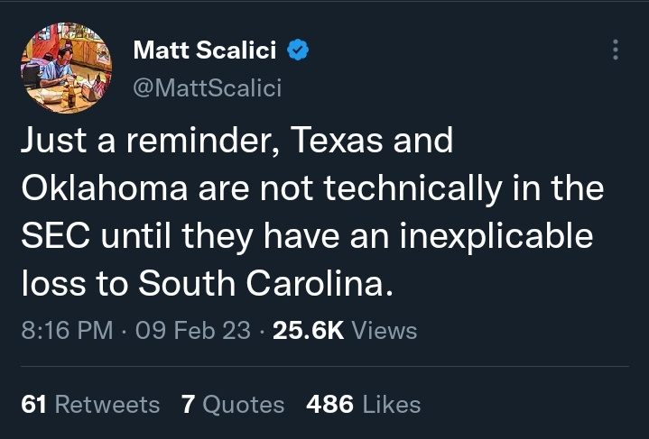 Here’s what I’d like to see - OU, Texas, Mizzou, A&M all have a top half run over the next decade. The absolute devastation it will bring to the SEC delusion that this is some kind of NFL jr league will be glorious.