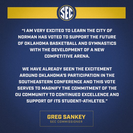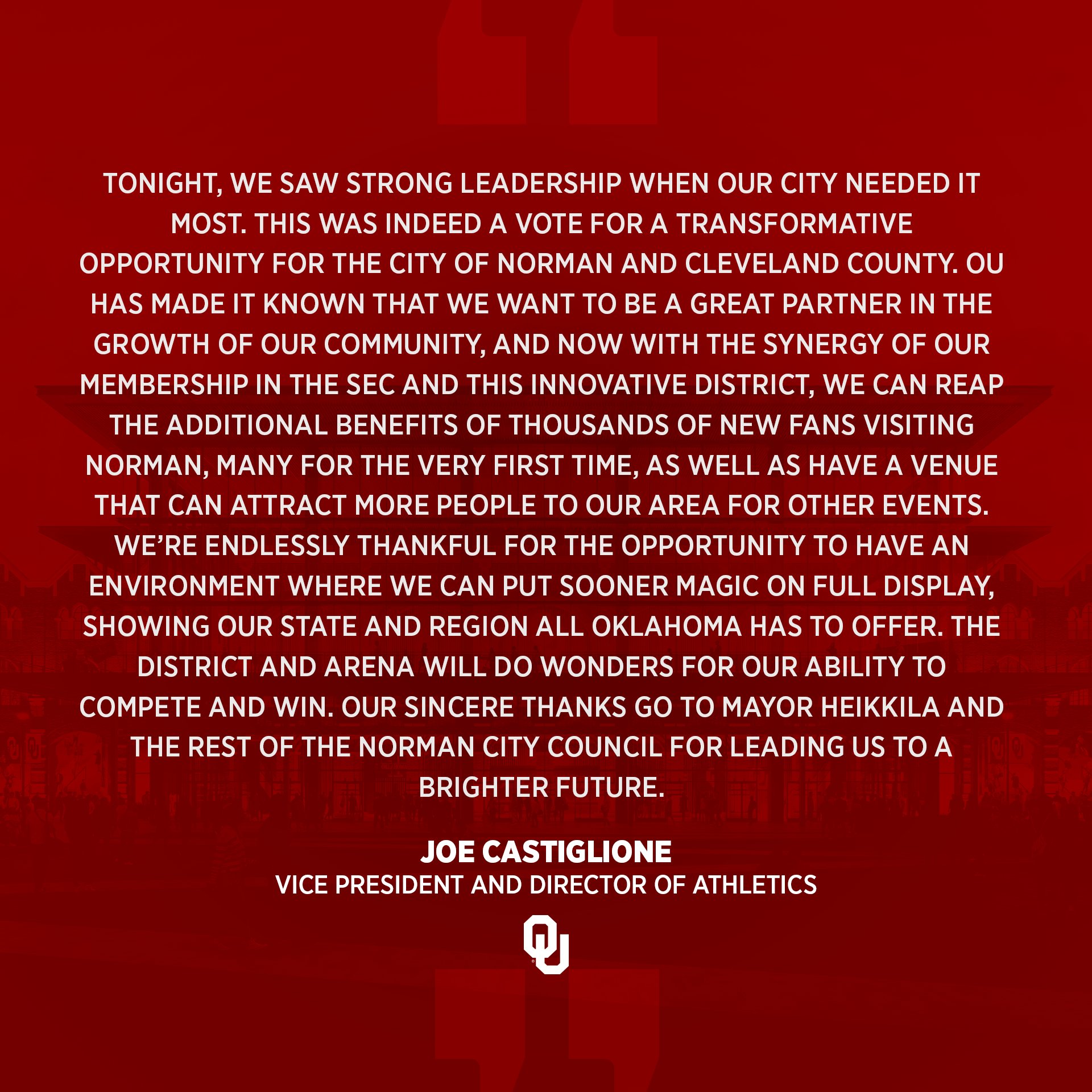 With tonight’s approval of the Rock Creek Entertainment District, we are one step closer to providing Sooner Nation and our programs with championship opportunities.