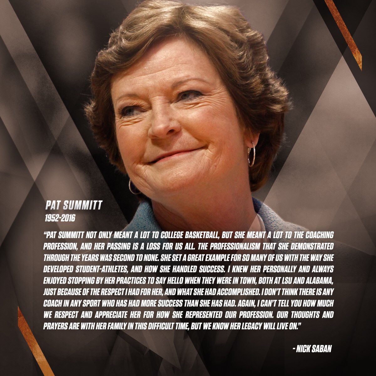 One of the greatest coaches across all fields. Her impact on the game will forever be remembered for generations to come. #RIPPatSummitt